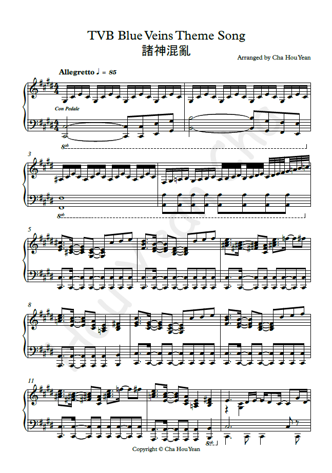 TVB Blue Veins Theme Song Piano Sheet